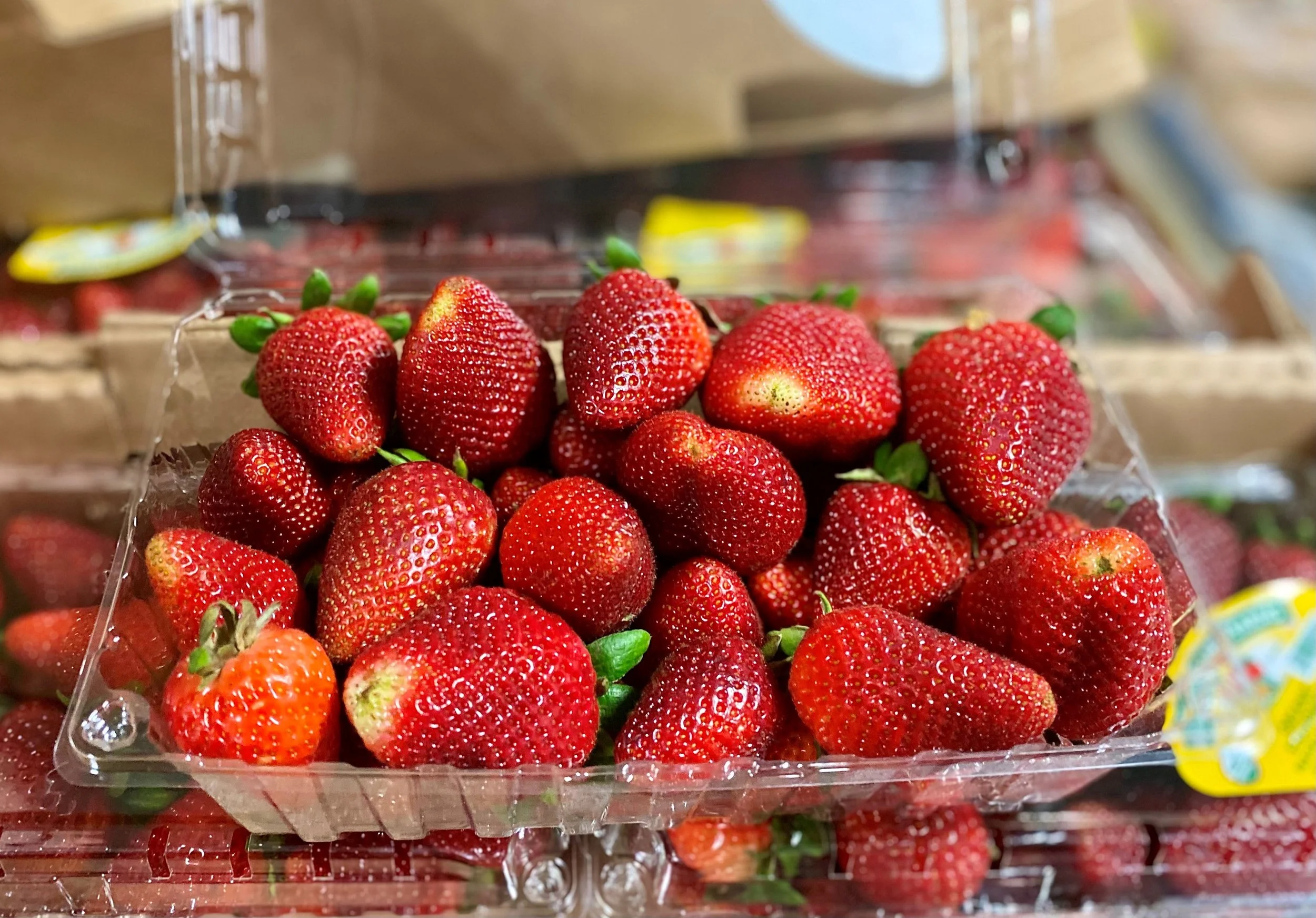 We've had vast amounts of strawberries through our bay doors for the past few days, all in preparation for Mother's Day. Who knew this fruit was a top seller for this holiday! Maybe strawberries and whip cream are a common dessert for moms? A strawberry shortcake? Chocolate dipped strawberries?